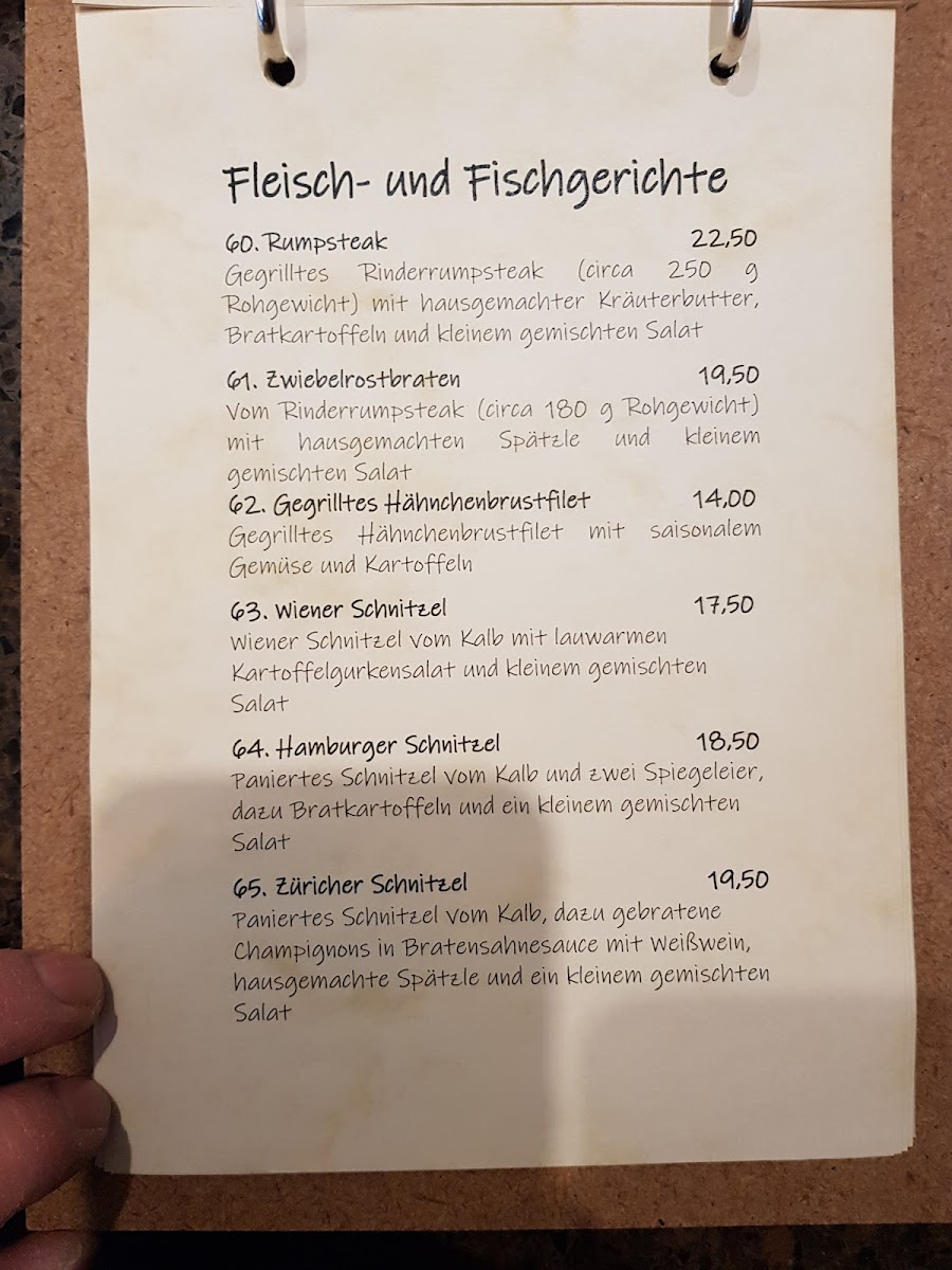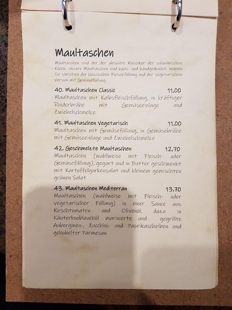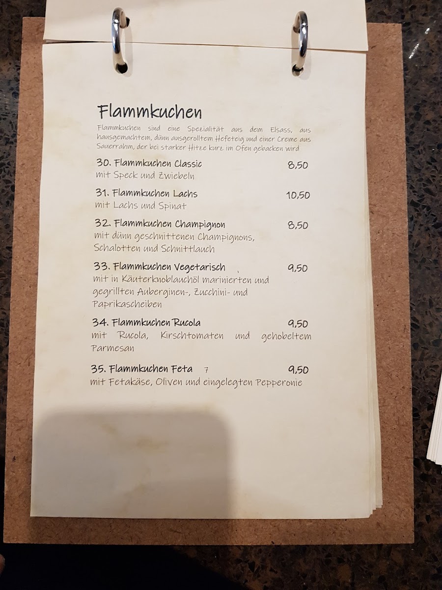 On the savory side, the menu highlights solid, familiar dishes executed with a homestyle spirit. Hähnchenbrust Mit Rosmarinkartoffeln stands out as a reliable main course, combining tender chicken breast with aromatic rosemary potatoes. Seafood fans can opt for Gegrilltes Lachsfilet, a lighter yet flavorful choice that adds variety to the menu. Traditional German comfort food is well represented by Spätzle Mit Hähnchen Und Bratensoße, a filling dish that emphasizes rich sauce and satisfying textures. Vegetarian guests are not overlooked, with Maultaschen Vegetarisch offering a meat-free take on a regional classic, and Flammkuchen Mit Mozzarella U Kirschtomaten providing a crisp, oven-baked option that feels both simple and fresh.